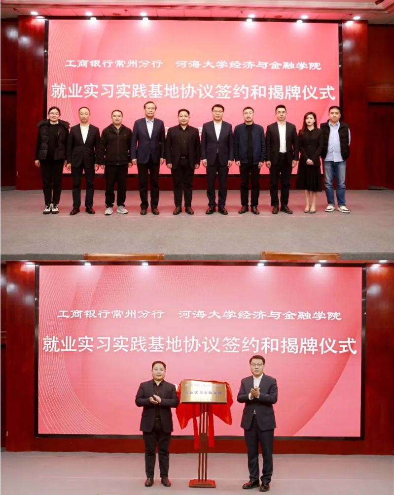 中国工商银行常州分行党委书记、行长张华军,党委委员、副行长吴刚及分行相关部门负责人出席本次活动。校企双方就产学研合作、金融人才培养、员工就业实习实践等方面进行了详细深入的交流,并举行优质就业实习实践基地协议签约揭牌仪式。