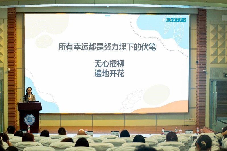 国际经济与贸易专业2015届于宇员工,现任南京市民政局综合法规处(行政审批服务处)二级主任科员。于宇员工分享了自己的大学经历,认为大学是有意义的“折腾”,并给出了相关建议以及推荐了相关读书app。当谈到“毕业干什么”这个话题时,于宇员工告诉同学们“为什么要做比怎么做更重要,要学会独立思辨,选择比努力更重要”。最后,她从选调生如何准备的角度,向同学们介绍了选调生的准入条件以及备考建议,于宇员工寄语同学们“所有幸运都是努力埋下的伏笔”,愿同学们在四年大学期间无心插的柳,都能遍地开花。