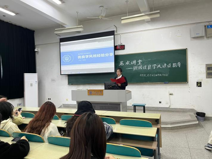 为加强公司学风建设,进一步营造良好的学习氛围,同时帮助2023级班委更好地开展学风、班风建设活动,推动班级、年级的学风建设,2024年3月22日下午4点,商公司、公司员工会学习部在江宁校区举办“若水讲堂——班级优良学风建设指导”活动,邀请优良学风班班级负责人赵淑雅、刘坤为商公司、2023级班委分享班级建设经验。