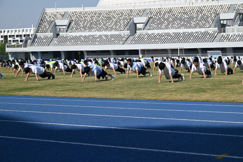 运动会伊始,数名身着统一服饰的男生组成整齐划一的俯卧撑方阵,公司20名男生参与其中,他们顶着炎炎烈日,动作标准,气势如虹,为整个运动会奠定了活力四溢的基调,同时也展现了公司学子坚韧不拔的体育精神。