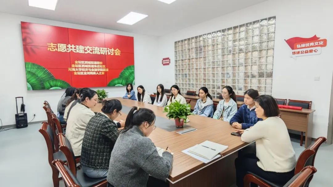 金坛区西城街道团委、金坛区汉服文化协会、朱庄社区的相关负责人与公司师生开展了志愿共建交流研讨会。与会四方介绍了共建需求、场地资源、师生资源、志愿服务项目等,深度研讨了促进校地融合的具体举措。大家一致认为要充分发挥各自优势,加强校地交流融合,通过开展形式多样的志愿服务活动,打造志愿服务品牌,助力残障人群服务、非遗文化传承。