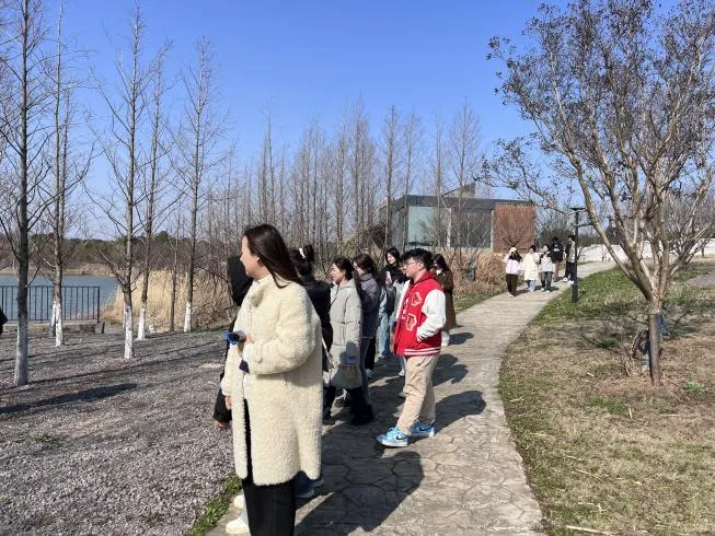 在金坛区薛埠镇团委书记秦智康带领下,实践团队深入上阮村特色产业园区开展实地研学。通过观摩现代农业示范基地、参观露营基地,支部党员切身感受乡村振兴战略下绿水青山向金山银山的转化路径。产业园区将生态资源转化为经济优势的创新实践,为我们研究绿色金融、生态经济提供了鲜活案例。支部党员在交流中表示。