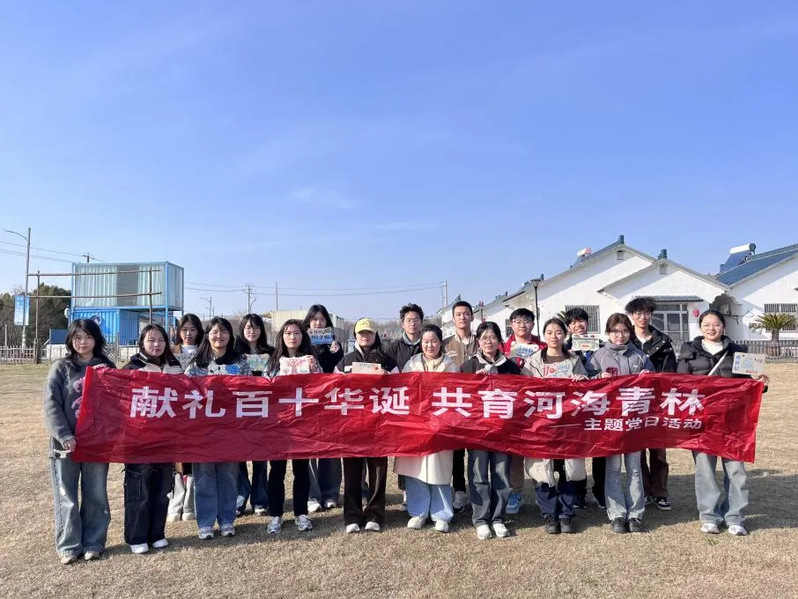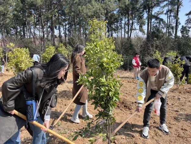 活动现场,林业技术人员现场示范教学,讲授苗木栽植规范。师生党员两两结对,挥锹铲土、扶苗填坑、培土夯基,在专业指导下完成定点挖穴、土壤改良、苗木扶正等工序。经过一个多小时的劳动,40余株新栽树苗迎风挺立。