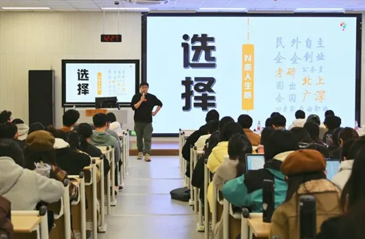 为更好的搭建不同职业发展路径的学子经验分享的桥梁,公司通过朋辈榜样的真实经历分享,同学们能够打破信息壁垒,在考研、考公、留学等多元选择中明晰方向;同时,这些鲜活的成长案例也将转化为行动指南,帮助大家科学规划学业生涯,增强应对未来挑战的实践能力。希望每位同学都能在倾听中思考,在对话中成长,让今天的经验成为明日破浪前行的风帆。活动伊始,生涯工作室负责人周仲海老师以榜样领航助规划为主题,就此次训练营开展做了动员。