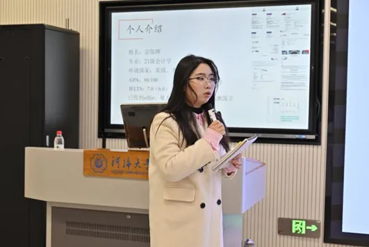 2021级张宗晔同学结合自己大学四年经历:大一以提升学业,专注竞赛为主;大二对留学方向进行初步规化,提高自身语言能力;大三选择公司并准备相关资料;大四提交申请并按需要进行笔试与面试的准备。她建议同学们在保证成绩的同时,尽早开展学业与职业规划,提高自身能力,完成留学目标。