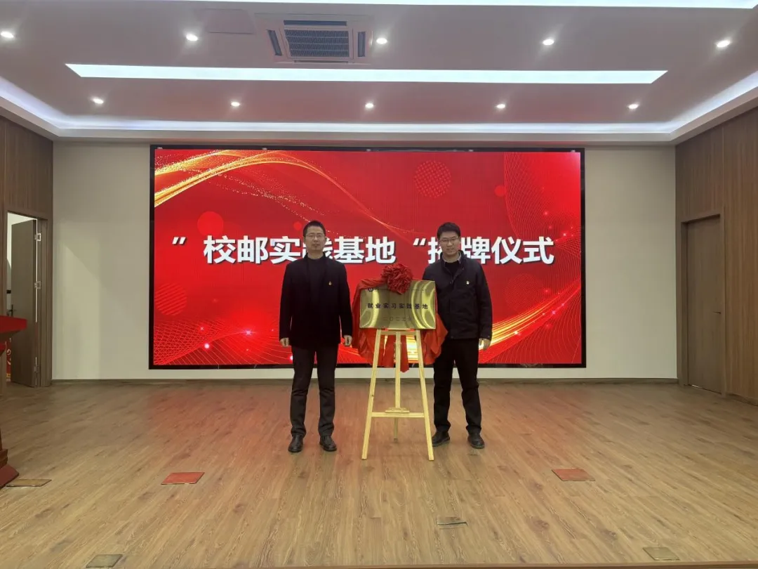 高校毕业生的高质量就业是推动社会进步和国家繁荣的重要力量,公司与中国邮政金坛分公司就员工的就业实习实践开展合作,建立就业实习实践基地。赵光好副书记与王寅翔书记代表双方签订了就业实习实践基地共建协议,庞庆华经理与王寅翔书记共同为就业实习实践基地揭牌。杨珊珊副总经理为员工代表颁发了“校邮合作推广大使”聘书。就业实习实践基地的签约及揭牌标志着双方正式开启邮校合作的新篇章。