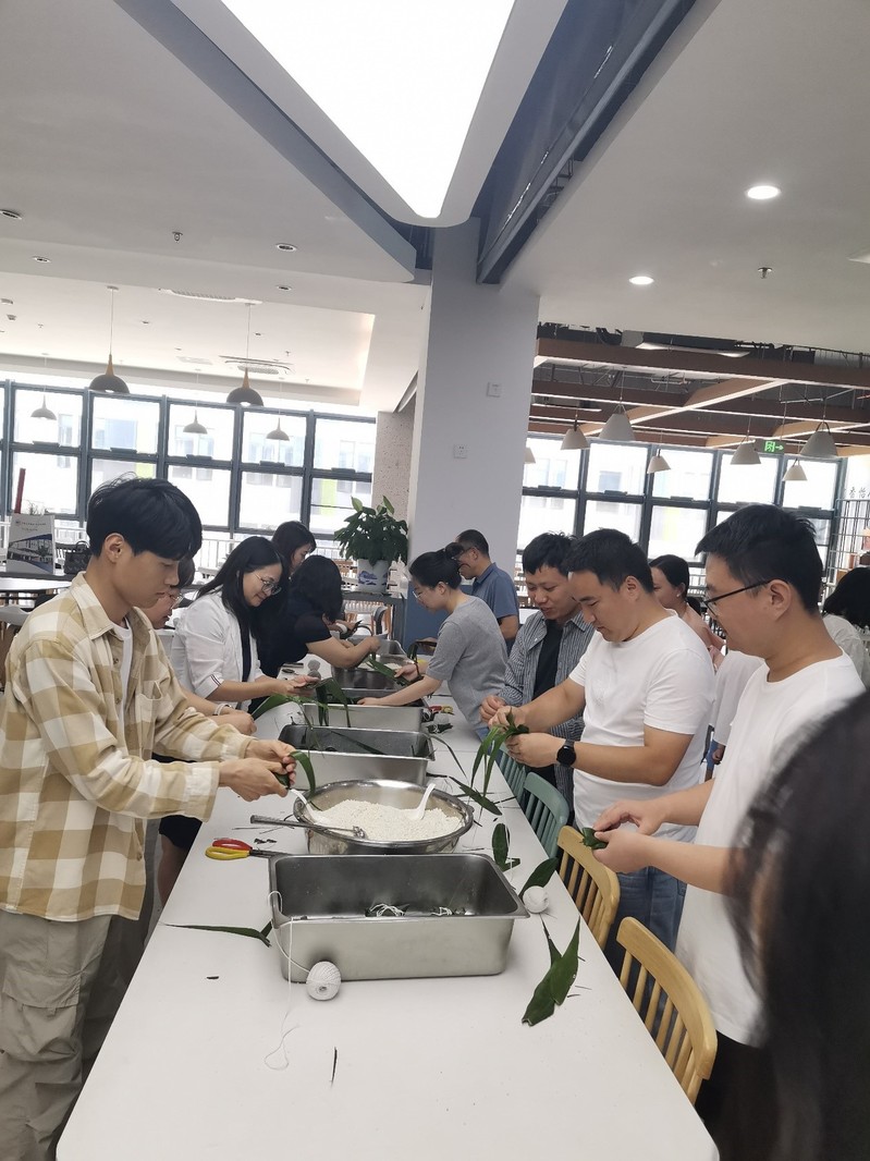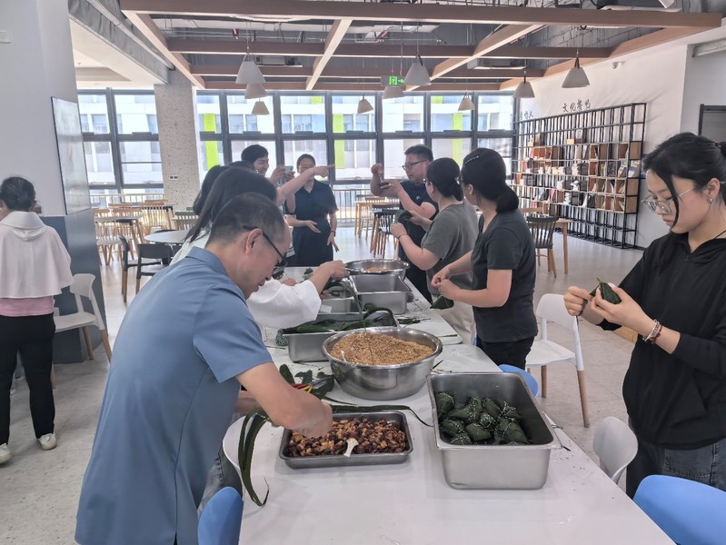 在“廉心粽”制作区域,教师们围在一起,分成若干小组,每组面前都摆放着糯米、粽叶、蜜枣等食材。大家纷纷动手尝试,从卷粽叶、填糯米、放馅料到捆扎成型,每一个步骤都学得认真仔细。虽然不少教师是第一次包粽子,但大家热情高涨,相互学习,分享端午节的由来和廉洁故事,不一会儿,一个个形状各异的粽子便呈现在眼前。有的粽子包裹得严实紧凑,棱角分明;有的则略显松散,形态可爱。教师们看着自己亲手包好的粽子,脸上洋溢着满足和喜悦的笑容。在清风手作体验区,公司工会准备了艾草、香囊等材料,老师们填充艾草,制作香囊,“驱邪扶正”。经过一个多小时的努力,教师们共包制了数百个粽子。大家品尝着自己亲手包制的“廉心粽”,潜移默化中强化了廉洁从教意识。