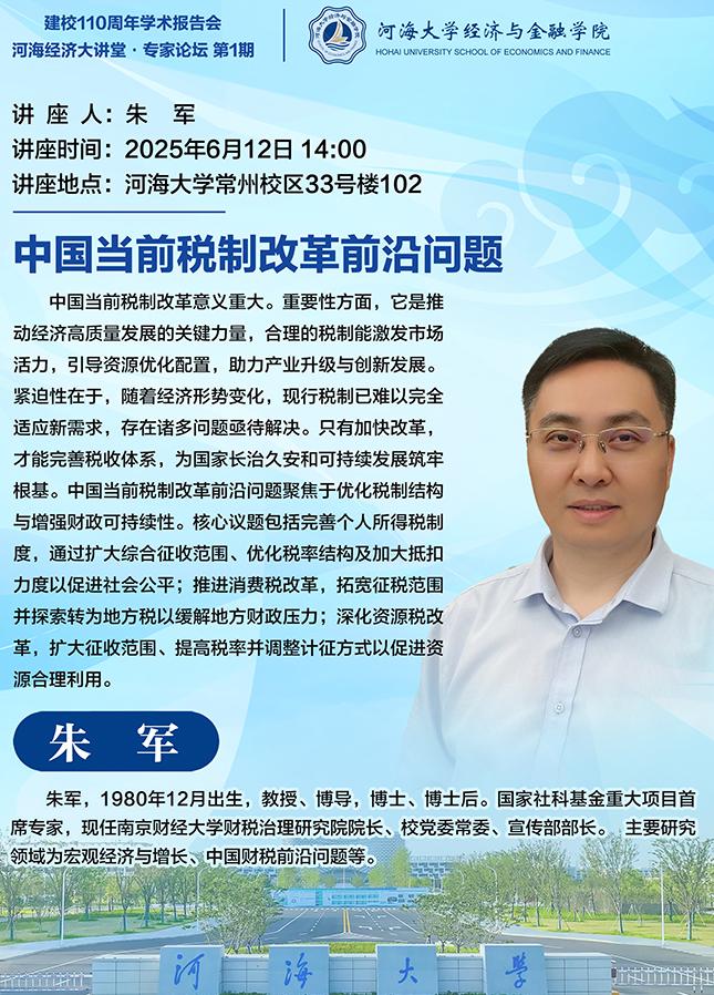 河海经济大讲堂·专家论坛 第1期:中国当前税制改革前沿问题