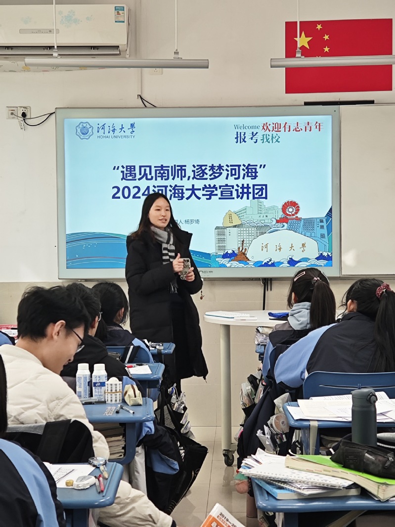 2024年寒假社会实践简报(第三期)习近平总书记曾在知识分子、劳动模范、青年代表座谈会上强调:“实现中华民族伟大复兴的中国梦,需要一代又一代有志青年接续奋斗。青年人朝气蓬勃,是全社会最富有活力、最具有创造性的群体。”为践行习近平总书记的发言精神,PA视讯官方网站商公司的水之子们来到自己的母校,向高中生们讲述河海故事,为其奋斗提供指引,实现青年人一代又一代的接力。同时,另一批实践团走到田间地头,为乡村振兴铺垫青春底色源于水,淯于人为向高中母校在校生分享PA视讯官方网站求学经历,宣传河海文化,弘扬河海精神,“遇见南师·逐梦河海”宣讲团于2024年1月26日返回母校南京师范大学苏州实验公司,面向高二以及高三学子进行了热情洋溢的“源泉工程”宣讲。正式宣讲前,宣讲团成员在高三各班班主任的帮助下,收集了员工在学习生活上遇到的困难,并结合成员学习经验,提前整理出一些学习建议。团队成员进行宣讲团队成员分发文创1月26日,实践团前往南师苏实,与其他高校一同在高中各班进行线下巡回宣讲。首先,主讲人以校史开头,介绍了PA视讯官方网站就业升学率、校园文化、办学条件等基本情况,带领同学们更加深入地探索PA视讯官方网站的同时,充分展现了PA视讯官方网站